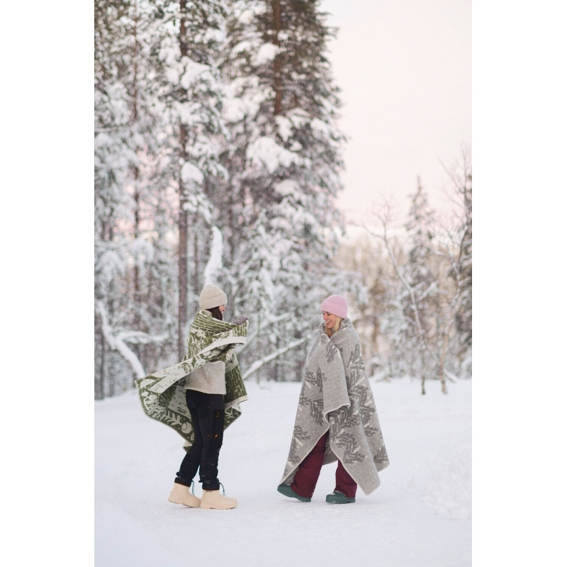Kvalitná vlnená deka zo 100% strižnej vlny v olivovo zelenom prevedení. Milý motív so zvieratami a rastlinami Metsikkö (fínsky háj) navrhol fínsky dizajnér a maliar Matti Pikkujämsä. Nádherná vlnená deka zútulní atmosféru každého interiéru a ak sa do nej zababušíte, skvele vás zahreje. Z jednej strany je deka tmavá so svetlou kresbou, na druhej strane je naopak svetlý podklad a na ňom tmavá kresba.
