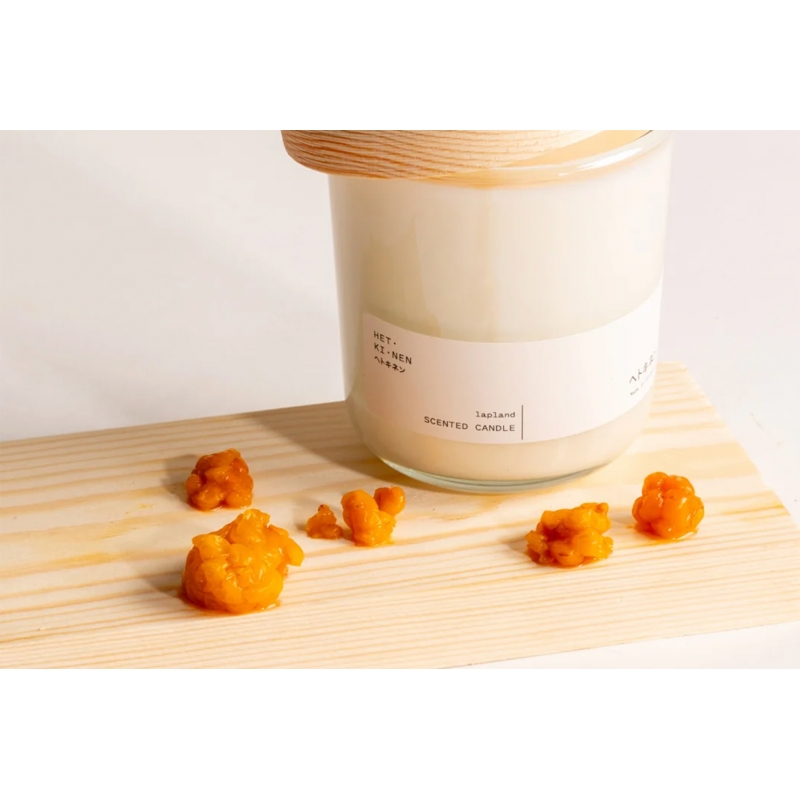 Fínska prírodná sviečka s knôtom z osikového dreva prinesie do vášho domova príjemnú atmosféru Laponska. Sviečka je vyrobená z repkového a sójového vosku, ktoré sú bezpečné, etické a ekologické. Prírodné esenciálne oleje z morušky a divokého rhododendronu, ktoré rastú len na severe, dopĺňa exotická vôňa extrahovaná z trávy tomkovice. Vôňa je bobuľovitá, sladká a aromatická, ako jasná noc laponského leta, kedy slnko nezapadá a v močiaroch zrejú morušky. Stačí zavrieť oči a na chvíľu sa ocitnete v tichu na nekonečnej laponskej pláni.