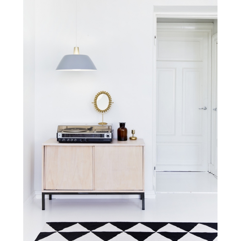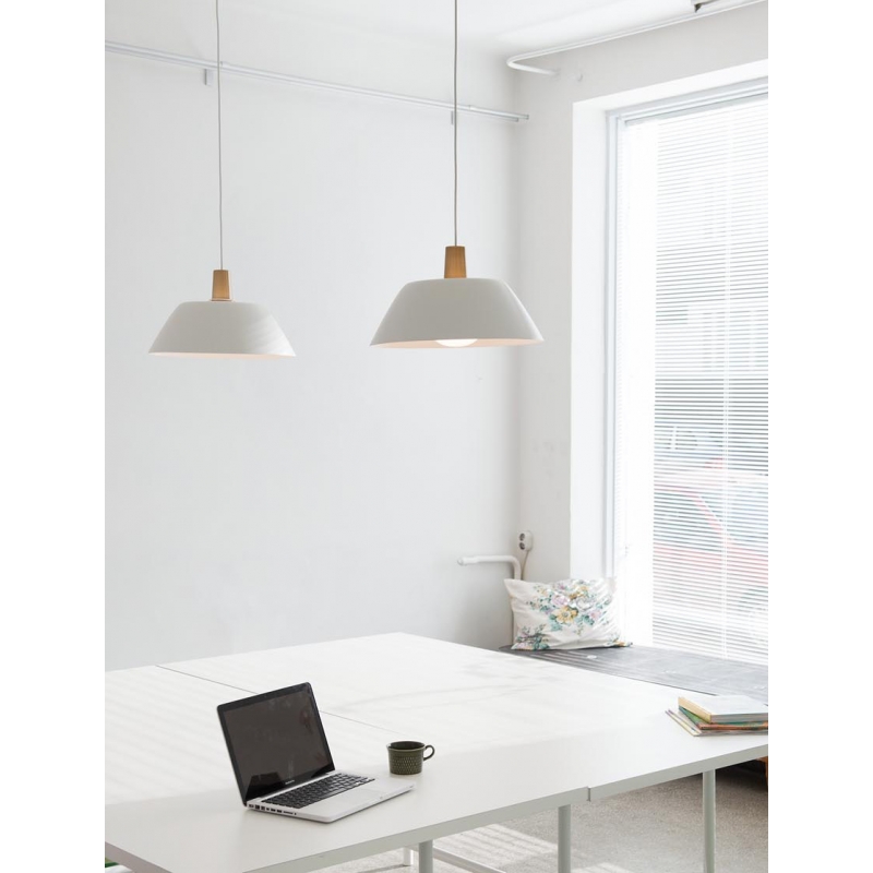 Biela závesná lampa so širokým hliníkovým tienidlom, mosadznou stopkou a akrylovým difúzorom rozjasní miestnosť príjemným svetlom. Vzhľadom k tvaru je ideálna najmä nad jedálenský stôl alebo konferenčný stolík. Nadčasový dizajn preveril čas, lampu navrhla v roku 1956 dizajnérka Lisa Johannson-Pape.